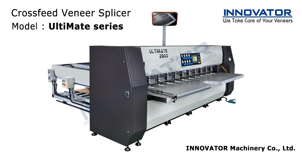 The UltiMate crossfeed splicing machine is designed for glue-spliced joint for long and panel-sized veneer faces. Veneer bundles can be well-cut straight with double knife guillotines and then pre-glued on the edges as preparation. The pre-glued veneer strips are fed into the machine manually with feeding stoppers for fast and easy operation. The efficient production output of the crossfeed splicing machines is a great deal faster than the longitudinal splicing machines, especially beneficial for long veneers. We also supply Automatic Stacking System as optional equipment for a big step towards the automated production. Together with our Double Knife Veneer Guillotine, CutMate D series, Double Sided Veneer Glue Applicator, GlueMate 700, and Veneer Fanning Machine, FanningMate, a full set of veneer splicing line is completed.